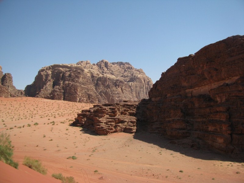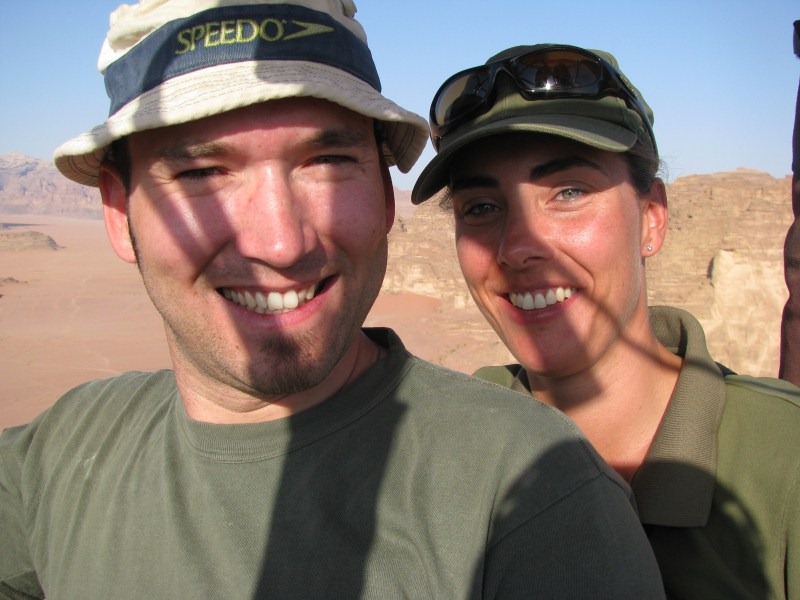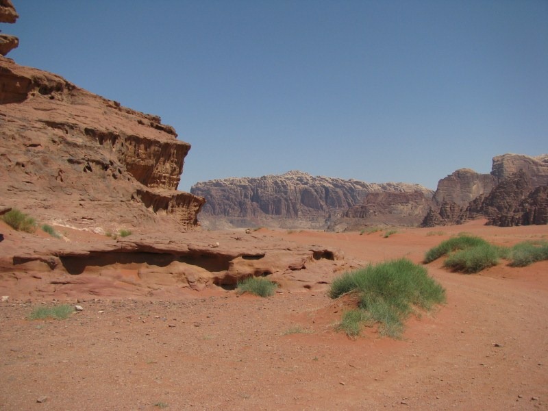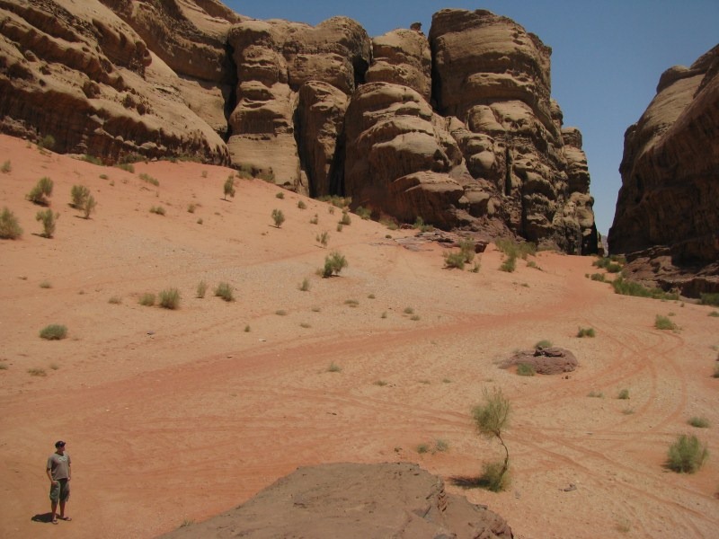 Unterwegs im Wadi Rum oder ein Fuchs kann immer kommenNachdem wir noch einen ganz faulen Tag im Hotel in Eilat verbrachten, ging es dann am nächsten Morgen mit dem Taxi in Richtung jordanische Grenze. Dass zwischen Israel und Jordanien nur auf dem Papier ein Friedensvertrag existiert, konnte man irgendwie spüren. Die Formalitäten dauerten eine ganze Weile, obwohl wir uns das Visum für Jordanien bereits in Deutschland besorgt hatten. Endlich in Jordanien angekommen, wurden wir sehr herzlich empfangen. Zusammen mit zwei US-Girls teilten wir uns ein Taxi in Richtung Wadi Rum. Die erste Nacht verbrachten wir zunächst knapp außerhalb des Wadis in dem wunderschönen Wüstencamp Bait Ali. Der letzte Luxus vor der Wüste (Dusche und ein richtiges Bett). Ursprünglich war für den nächsten Morgen ein Flug mit dem Heißluftballon geplant. Der Pilot verschob den Termin allerdings auf den nächsten Tag. So musste unsere 3-Tage-Wadi-Rum-Safari leicht geändert werden. Für unseren Guide Khalid stellte das aber kein Problem dar. Völlig unkompliziert sprach er sich mit dem Ballonpiloten per Handy über die genaue Vorgehensweise ab und wir vertrauten auf alles Weitere. Gleich vorab: Wir wurden nicht enttäuscht. Nachdem wir den Jeep mit den nötigen Lebensmitteln für die nächsten 2,5 Tage beladen hatten, fuhren wir drei dann endlich ins Wadi. Khalid zeigte uns Quellen, alte Inschriften der Nabatäer und Araber und was die Wüste sonst noch so zu bieten hatte. Hier ein paar durchaus imposante Fakten: Um die Mittagszeit suchten wir uns ein schattiges Plätzchen und macht eine ausgedehnte Ruhepause, die mit Tee und etwas zu Essen begann. Die Temperaturen waren einfach zu hoch (ca. 40 Grad) um sich zu bewegen. Nach der Pause zeigte Khalid uns noch ein paar besonders schöne Stellen. Unter anderem eine mehr oder weniger verborgene Höhle mit einer Quelle. Dort wuchs ein Baum mit Wüstenfeigen. Die Früchte sind nicht so groß wie "normale" Feigen und schmecken etwas bitterer, sind aber trotzdem sehr lecker! Anschließend steuerten wir dann das Lager für die Nacht an. Es bestand aus Zelten, einer gemauerten Küche und Toilette. Für ein "Beduinencamp" der totale Luxus. Während wir auf einer vom Lager etwas abseits gelegenen Sanddüne den Sonnenuntergang beobachteten, bereitete Khalid das Abendessen vor. Es bestand aus einem superleckeren "Hähnchen-mit-Reis-und-Gemüse"-Gericht und natürlich Tee. Auf dem Rückweg von unserem "Sundowner-Cruise" sahen wir einen Wüstenfuchs. Eines der wenigen größeren Säugetiere, die in diesem Klima überleben. Er hatte uns schon lange vorher entdeckt und tapste in sicherer Entfernung an uns vorbei. Im Vergleich zum heimischen Fuchs, haben Wüstenfüchse ein eher gräulich-bräunliches Fell und längere Läufe. Selbst in der einsamsten Wüste bewahrheitet sich Papa Tigges’ Satz: “Fuchs kann immer kommen.” Bilder von unserem Lager. Auf die Nächte in der Wüste hatten wir beide uns schon im Vorfeld sehr gefreut und wir wurden nicht enttäuscht. Unter einem wolkenfreien Sternenhimmel zu liegen, absolute Stille zu genießen und dabei nicht zu frieren, lässt vermutlich jeden Stadtmenschen so richtig zur Ruhe kommen. Der nächste Tag fing für uns dann schon um 5:30 an. Der verschobene Ballonflug stand an. Khalid fuhr uns wieder ins Wadi Rum Village, wo ein Taxi auf uns wartete. Wir sammelten noch vier weitere Gäste ein und fuhren dann auf eine große Fläche, ideal für einen Heißluftballonstart. Da der Pilot nur mit insgesamt 4 Personen gerechnet hatte und der Ballon für lediglich 5 Passagiere ausgelegt ist, musste einer unten bleiben. Ein junges Mädel meldete sich sofort freiwillig und wirkte dabei sichtlich erleichtert, nicht mit einsteigen zu müssen. Sie passte dafür auf unser Gepäck auf. Die Fahrt über das Wadi war atemberaubend. Aufgrund der Windverhältnisse sind wir zwar nicht allzu weit gekommen, aber die Aussicht war fantastisch. Dennoch war ich etwas erleichtert, wieder festen Boden unter den Füßen zu haben. Mit 196cm Körperlänge ist man zum einen mit dem Gasstrahler mehr oder weniger auf einer Höhe (man kommt sich teilweise vor wie ein Hähnchen auf dem Grill) und zum anderen reicht der Rand des Korbs gerade mal bis zu Hüfte. Ein echt doofes Gefühl in 4000 Fuß Höhe. Bilder von unserer Ballonfahrt. Nach dem Frühstück im Dorf ging es dann wieder ins Wadi. Eine Wanderung stand auf dem Plan. Khalid führte uns zum angeblich höchstgelegenen, freistehenden Natursteinbogen überhaupt. Nach knapp 2 Stunden Kletterei waren wir schließlich oben. Bei den Temperaturen eine schweißtreibende Angelegenheit, wie Ihr Euch sicherlich vorstellen könnt. Die Mittagszeit verbrachten wir dort oben mit Tee, ein paar Leckereien aus der Dose und einem Schläfchen im Schatten. Nach dem Abstieg fuhren wir noch ein wenig durchs Wadi und steuerten schließlich wieder das Lager an. Auch die zweite Nacht war wieder sternenklar und wir genossen sie unter freiem Himmel. Am dritten und letzten Tag stand ein Kamelritt auf dem Plan. Khalid fuhr uns zu der Stelle, an der uns ein befreundeter Beduine mit seinen drei Kamelen erwartete. Jeder bekam sein eigenes "Wüstenschiff" und so schaukelten wir gemeinsam durch das Wadi. Zunächst wurden Julija's und mein Kamel noch an das Leitkamel angebunden, das änderte sich aber schon nach der ersten Pause. Ziemlich schnell zeigten sich die Eigenschaften unserer behöckerten Vierbeiner. Julija hatte ein gut zu lenkendes Kamel, das aber recht gefräßig war und hin und wieder mal an einem Strauch einen Happen fraß. Mein Kamel war eher faul und störrisch. Ständig musste es angetrieben werden, damit es nicht stehen blieb. Nach der obligatorischen Mittagspause wurde getauscht und ziemlich schnell stellte sich ein weiterer Unterschied heraus: Der Komfort der Sättel. Auf diesem Sattel konnte ich überhaupt nicht gut sitzen und so wurde das letzte Drittel der Kamelreise eine wahre Belastungsprobe für Hinterteil und Adduktore