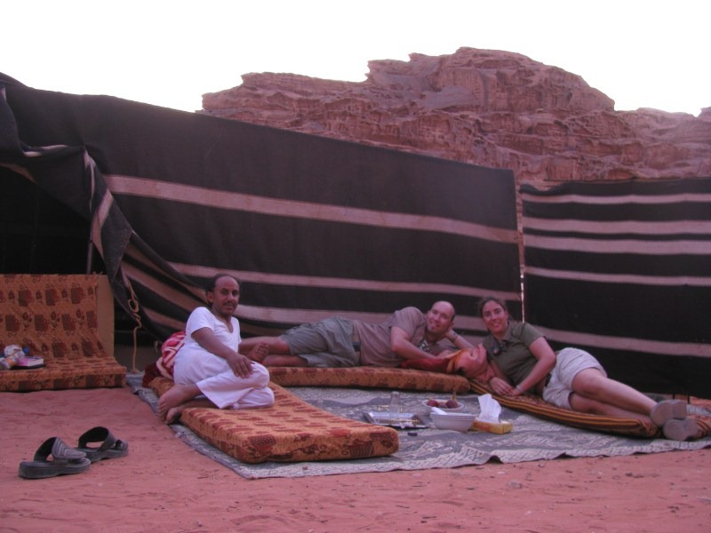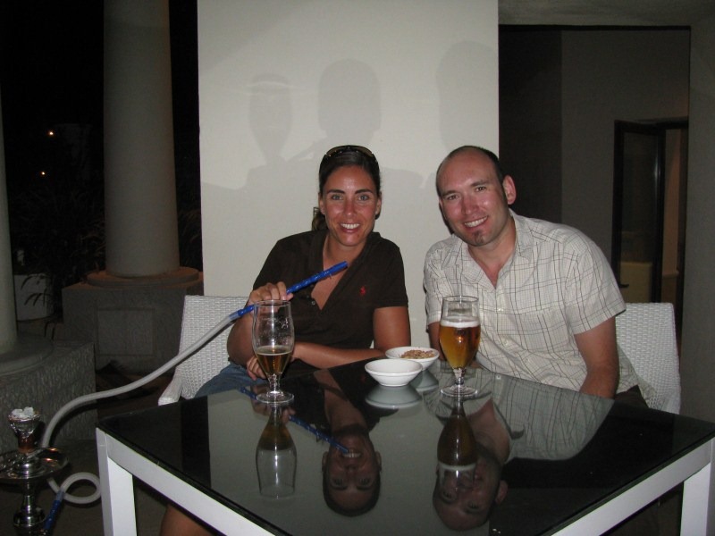Im Vergleich zu unserem Beduinencamp der letzten Tage, erschien uns nun das Zimmer noch viel luxuriöser. Kaum hatten wir es betreten, standen wir auch schon unter der Dusche! Den Abend verbrachten wir dann gut riechend und schick angezogen auf der wunderschönen Dachterrasse bei arabischem Barbecue, Argila (Wasserpfeife) und gut gekühlten Getränken. Was für ein Kontrastprogramm!!! Auf die Weise weiß man erst zu schätzen, wie gut es einem geht!