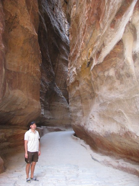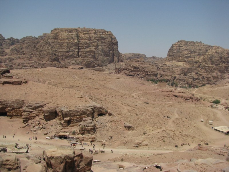 Am nächsten Morgen ging es dann nach einem ausgiebigen Frühstück per pedes zu den Ausgrabungsstätten von Petra. Die verlassene Felsenstadt war in der Antike die Hauptstadt des Reiches der Nabatäer. Wegen ihrer Grabtempel, deren Monumentalfassaden direkt aus dem Fels gemeißelt wurden, gilt sie als einzigartiges Kulturdenkmal. 1985 wurde Petra in die Liste des UNESCO-Weltkulturerbes aufgenommen. Vom Visitors Center aus schlängelt sich eine Schotterstrasse ca. 1,5 km ins Wadi Musa, gefolgt von dem etwa noch einmal genauso langen Siq (eine enge Felsschlucht), der sich schließlich zum Khazne al-Firaun (dem Schatzhaus) hin öffnet. Für die Cineasten unter den Lesern sei an dieser Stelle auf den Film von Steven Spielberg “Indiana Jones und der letzte Kreuzzug” verwiesen, dessen letzte Szenen im Siq und vor dem Khazneh al-Firaun gedreht wurden.