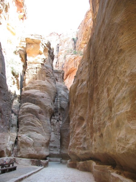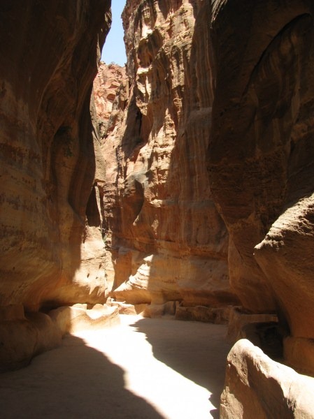 Zur günstigen Geographie kam die versteckte Lage Petras zwischen schroffen Felswänden sowie eine sichere Wasserversorgung. Der Ort ist nur über einen schmalen Gebirgspfad von Nordwesten zugänglich oder von Osten her durch eine etwa 1,5 Kilometer lange und bis zu 200 Meter tiefe Felsschlucht, den Siq (dt.: „Schacht“), der an seiner engsten Stelle nur 2 Meter breit ist. Brauch- und Trinkwasser wurde über in den Fels gemeißelte Aquädukte in die Stadt geleitet sowie durch Terrakottaröhren, die ebenfalls in die Felswände eingelassen und mit Gips abgedichtet waren. Das höchst komplexe Wasserversorgungssystem, das zudem mehr als 200 Zisternen umfasste, speiste sich aus allen bekannten Wasserquellen im Umkreis von mehr als 25 Kilometern um die Stadt. Die Reste der Aquaedukte könnt ihr auf den Fotos noch erahnen.