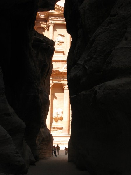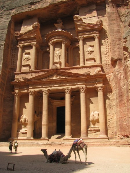 Ein sehr beeindruckender Anblick! Das 40 m hohe und 25 m breite Khazne al-Firaun ist im hellenistischen Stil erbaut. Angeblich soll der Bau 60 Jahre gedauert haben. Das „Schatzhaus des Pharao“, wie es von den Beduinen genannt wurde, war in Wirklichkeit eines von zahlreichen Felsgräbern. Es wurde möglicherweise für den Nabatäerkönig Aretas IV. angelegt, der im 1. Jahrhundert v. Chr. regierte. Dank der strategisch günstigen Lage Petras am Kreuzungspunkt mehrerer Karawanenwege, die Ägypten mit Syrien und Südarabien mit dem Mittelmeer verbanden, war die Stadt vom 5. Jahrhundert vor bis zum 3. Jahrhundert nach Christus ein bedeutender Handelsplatz. Insbesondere kontrollierte Petra einen wichtigen Knotenpunkt der Weihrauchstraße. Diese uralte Handelsroute führte vom Jemen aus an der Westküste Arabiens entlang und teilte sich bei Petra in einen nordwestlichen Zweig, der nach Gaza führte, und in einen nordöstlichen in Richtung Damaskus.